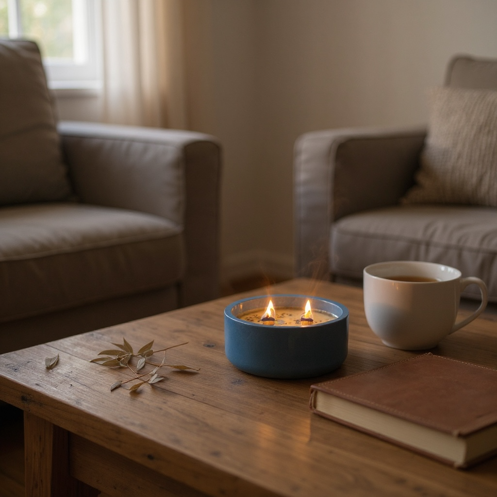 Molde de resina ecológica / 225 g de cera de soja / aromas naturales / mecha madera / 25h de de combustión.